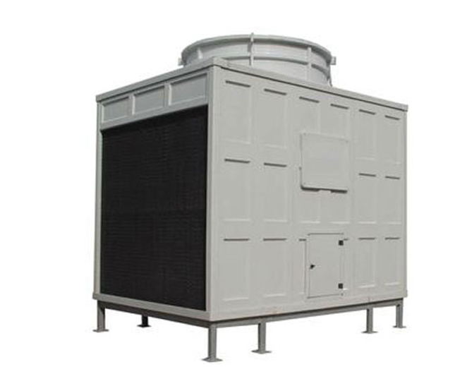 横流式玻璃钢冷却塔采用两侧进风,靠顶部的风机,使空气经由塔两侧的填料,与热水进行介质交换,湿热空气再排向塔外。填料采用两面有凸点的点波片,通过安装头使点波片粘结成整体,以提高刚性,两面的凸点还可避免直接滴水,因此提高了水膜形成能力,填料尾部设有收水措施。